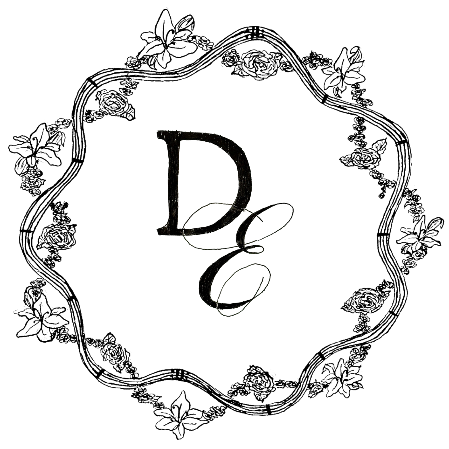 No centro, as iniciais entrelaçadas carregam sua própria linguagem: traços firmes e traços delicados que se combinam em perfeito equilíbrio, lembrando que a harmonia nasce da união de diferenças que se complementam.